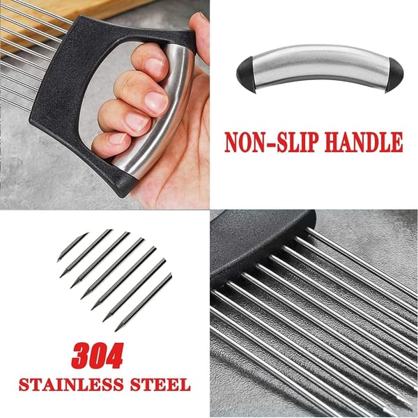 USAGE SCENARIO -- Not just designed for onions. can also be used for other hard ingredients such as fruits, potatoes, carrots, lemons, and even garlic. the vegetable holder can also be used as a meat tenderizer. Long steel needle penetrates deeply, into the meat to improve its taste. It is also easy to clean after use. light in weight, everyone can use it for cooking